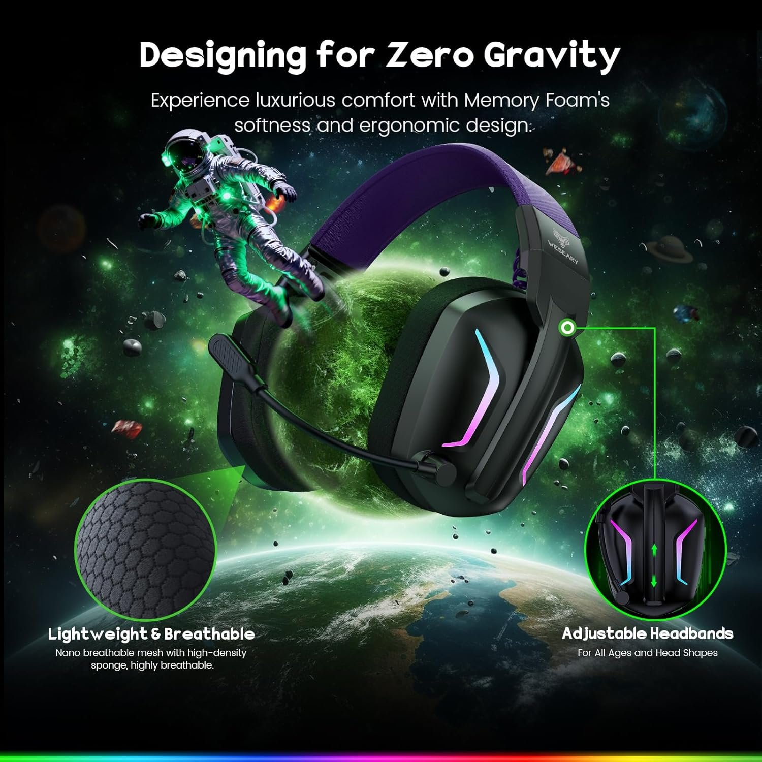The WESEARY Wireless Gaming Headset is a remarkable choice for gamers seeking high-quality audio, comfort, and versatility. Its dual connectivity options make it a perfect companion for various gaming systems, while the stunning design and immersive sound elevate your experience to new heights.