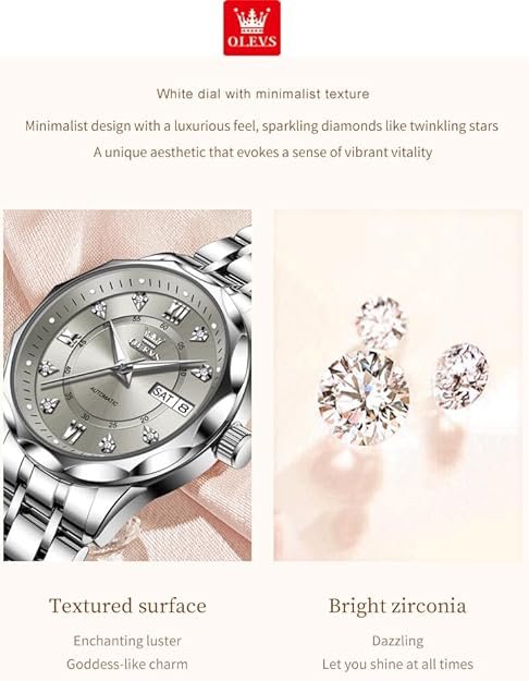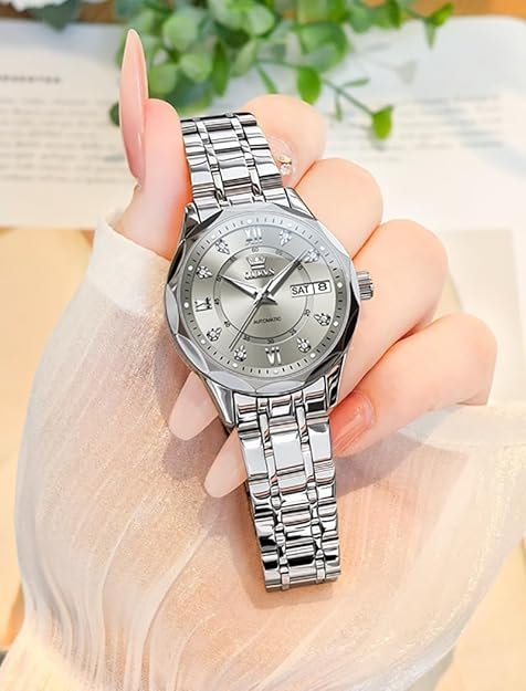 The OUPINKE Women's Watch is a stunning blend of elegance and functionality, making it an excellent choice for anyone looking to elevate their accessory game. With its automatic movement and sparkling diamond dial, it stands out as both a reliable timepiece and a fashionable statement.